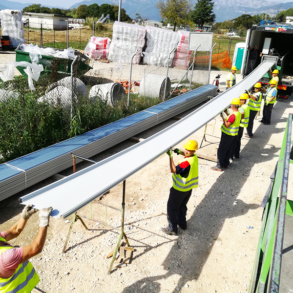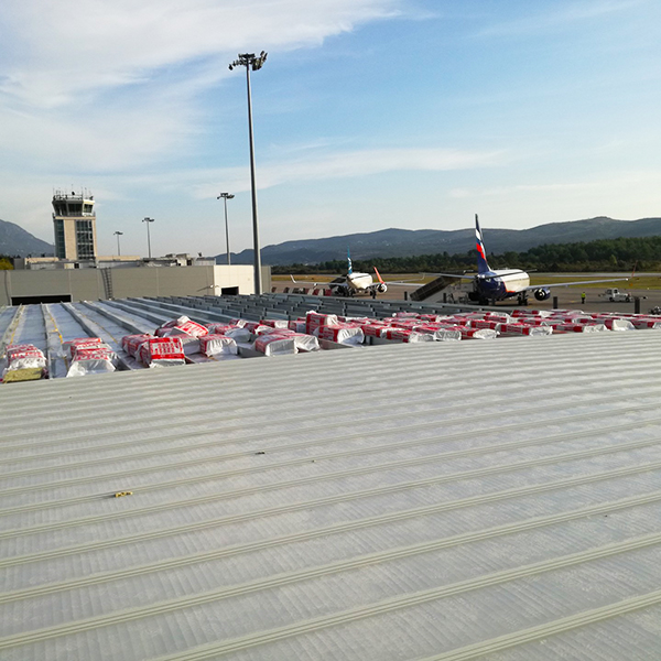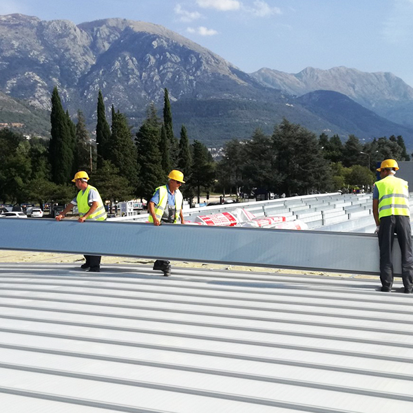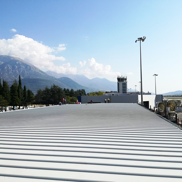 Aluminijumski krovni sistem “Metalhron Mela_dRain 540” izrađen je od aluminijumskih traka, debljine 0,7mm pokrivne širine 540mm proizvedenih na profilir mašini na gradilištu u čitavoj dužini krovne ravni, bez šrafljenja, rupa ili preklopa na samoj površini krova.